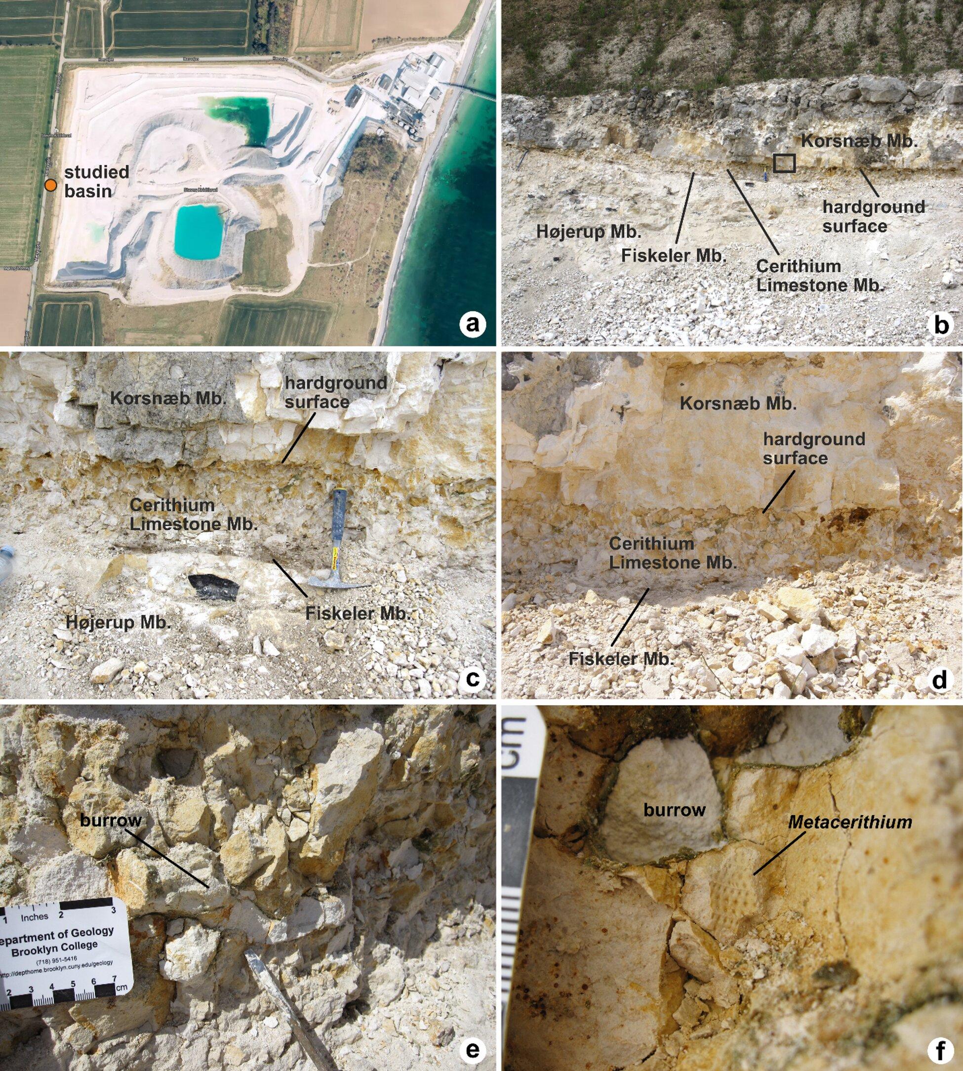 Esemplari di ammoniti provenienti dalla parte principale del Cerithium Limestone Member a Stevns Klint.